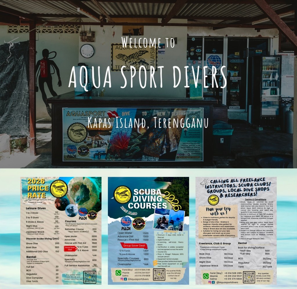 You can contact the trusted dive centre “Aqua sport”, with any dive related queries at: